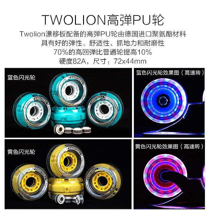 TWOLIONS Oriental watch seven-layer maple thickened adult two-piece flash drift board aluminum alloy large board scooter