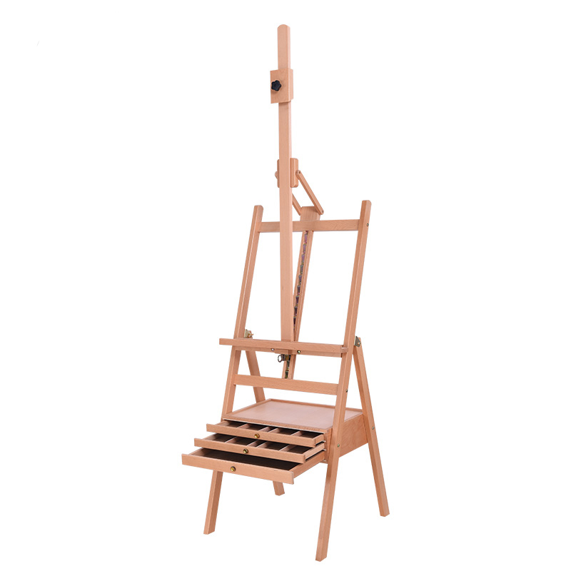 Beech easel with drawers Beech three-layer easel with drawers Front-tilting beech easel with drawers Front-tilting beech three-tier easel with drawers Beech folding easel