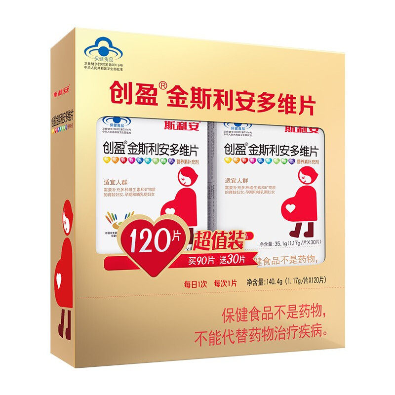 Kingsley Multidimensional Tablets Folic Acid 120 Tablets Gift Box for Pregnant Women Equipped with Nutrition for Early Pregnancy, Middle Pregnancy and Late Pregnancy