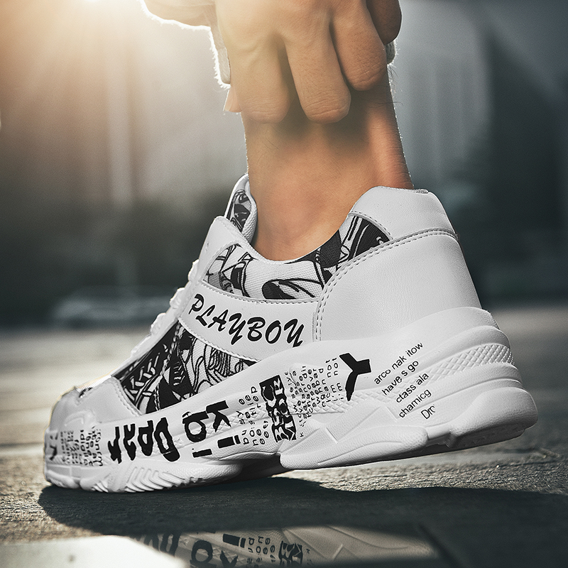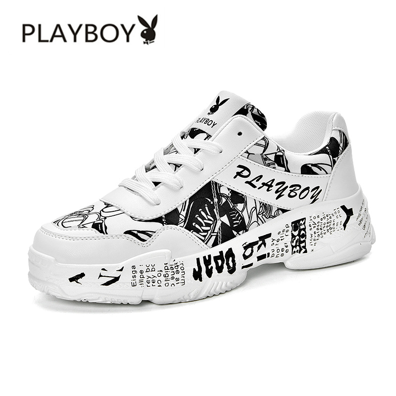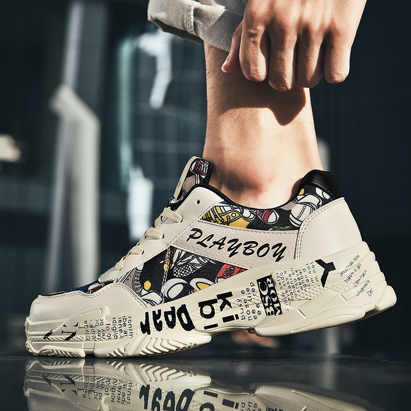 Floral Playboy men's shoes Summer 2022 new 100 hitch breathable motion heightening casual old daddy Chains Chauts black and white