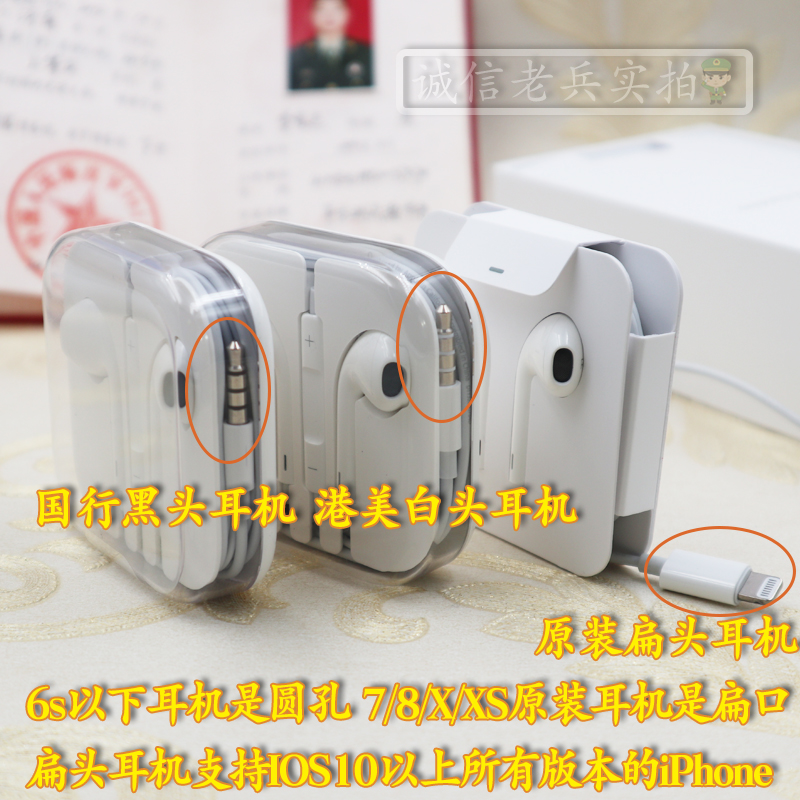 Veteran Apple headphones apply iPhone11 countries line-in-ear style 12 cable X flat head XS mobile phone 6 generation port version 8plus detached machine 8p wire control earplug XR Minai