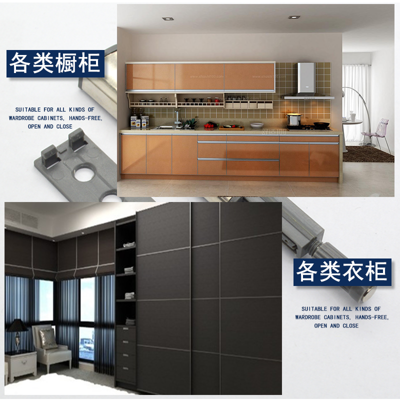 Stainless steel integral cabinet door panel Push-type rebound device Handle-free door opening press rebound hinge Self-elastic device accessories