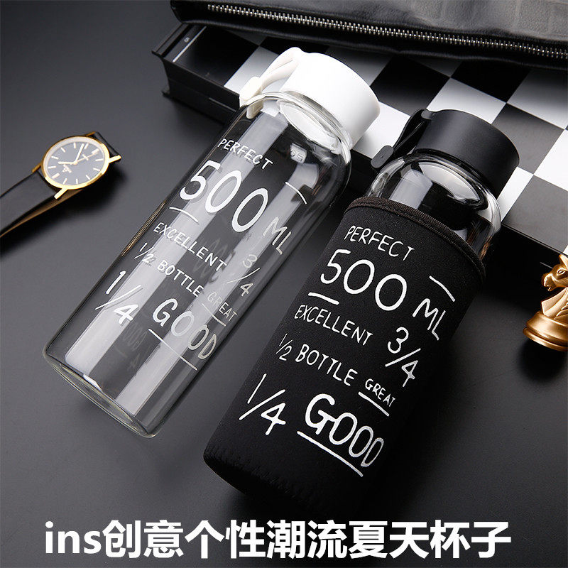 Large capacity water cup men's portable cup creative simple personality glass female student trend Korea