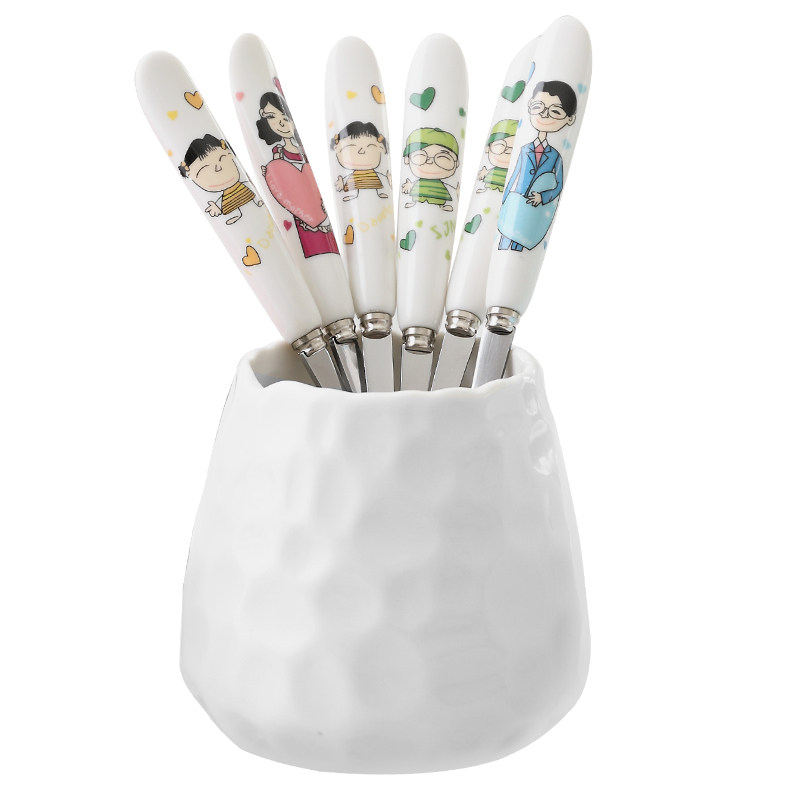 Korean cute cartoon ceramic stainless steel fruit fork spoon set children's dessert fork moon cake sign a family of four