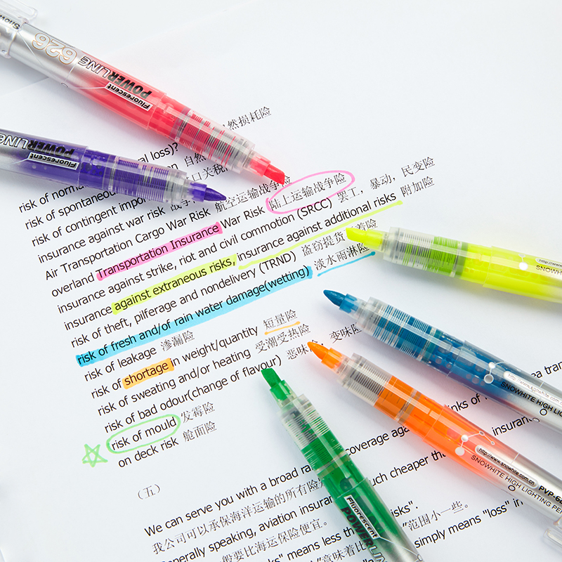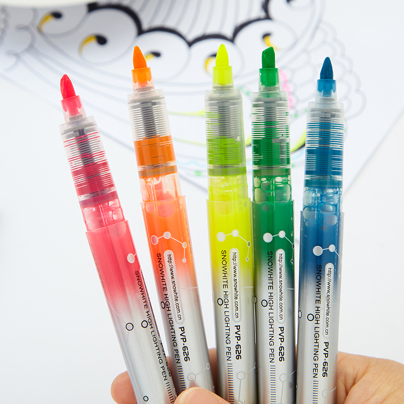 White Snow Color Fluorescent Pen Multicolored pen Pale Color Large Capacity Sloped Focus Pen Orange Powder Red Yellow Blue Green Rose Purple Suit Candy Color Straight Liquid Style Flash Pen Cap 626 Hand Ledger Pen-Taobao