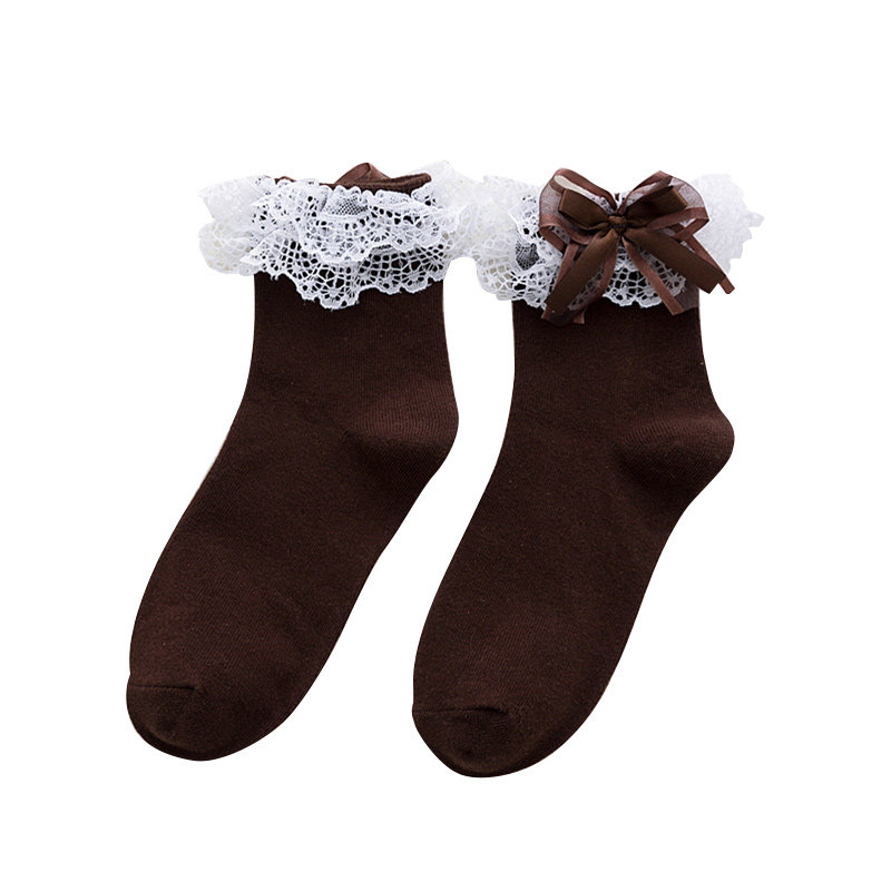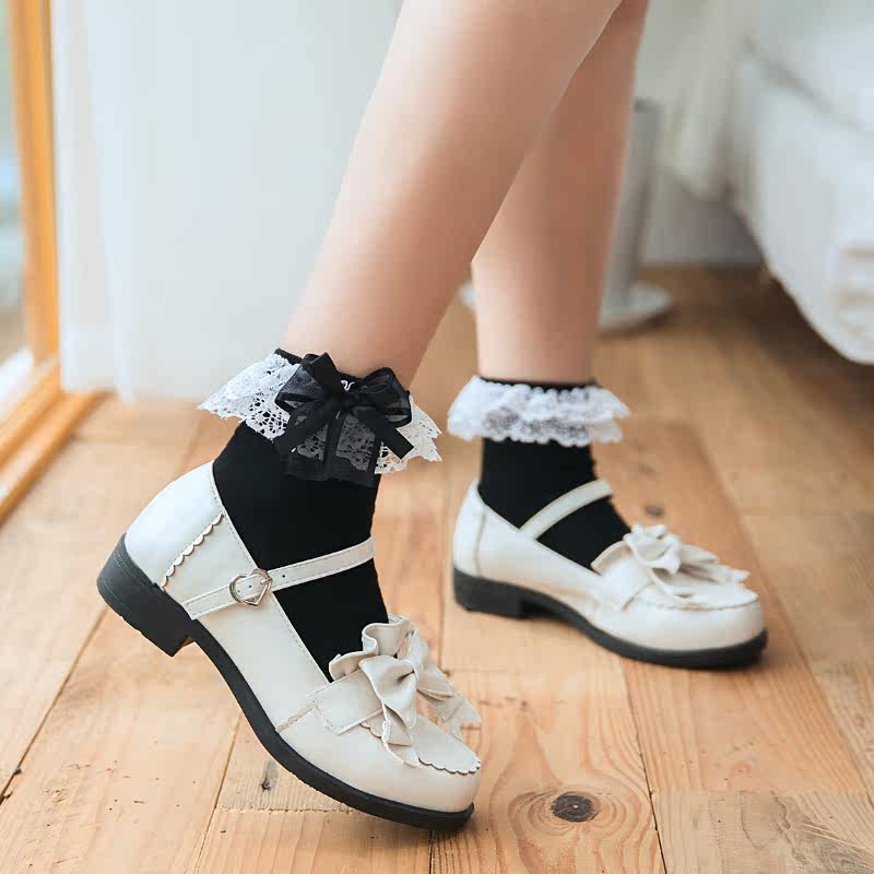 Zhen taro milk tea) heavy industry bow lace lace tube socks cute lolita soft girl girl cotton socks