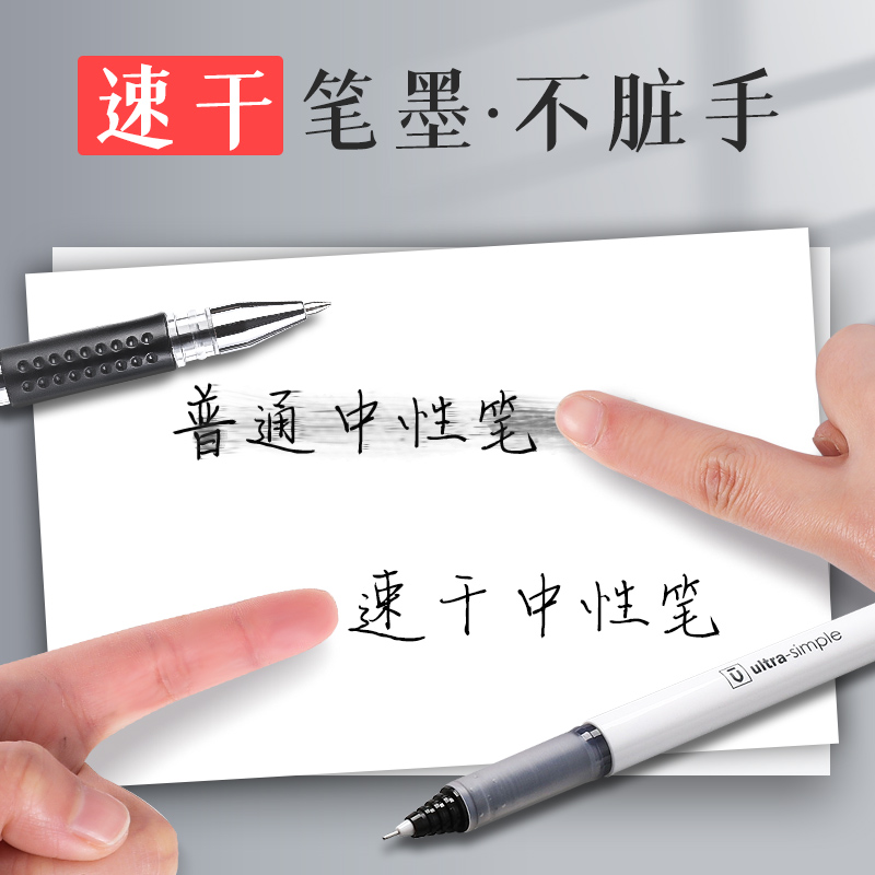 Morning light white eugenin straight liquid type water-based ballpoint pen 0 5mm students with medium sex pen exam special speed dry water-based pen black carbon full tube sign pen red blue large capacity speed dry refill