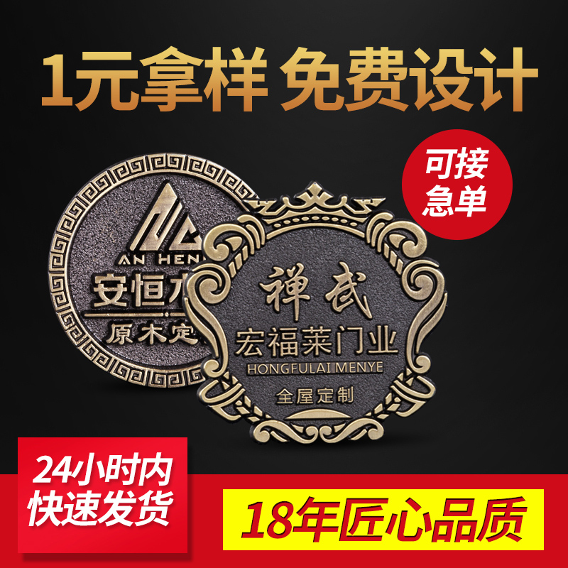 Copper-zinc alloy trademark logo sign custom-made flower art logo door and window furniture retro nameplate custom-made bronze antique copper imitation gold stamping die-casting electroplating badge nameplate custom-made