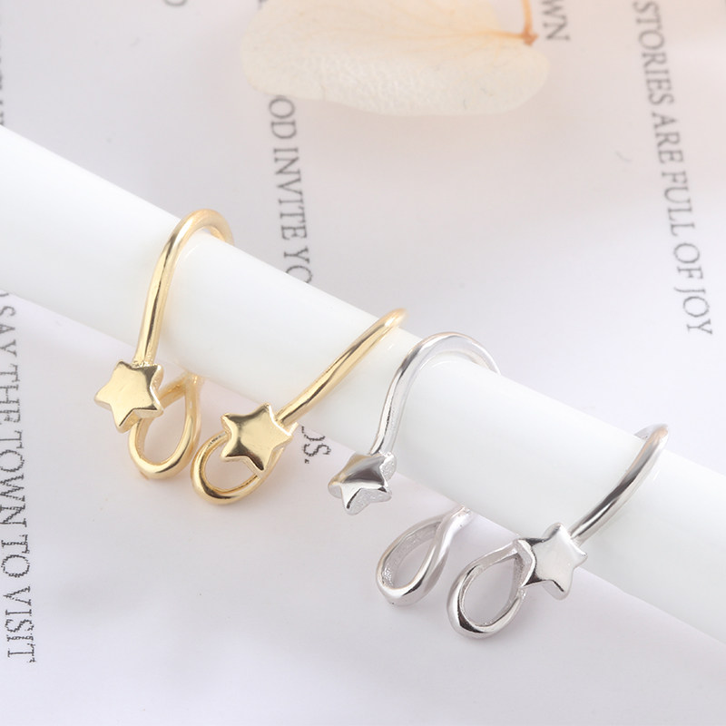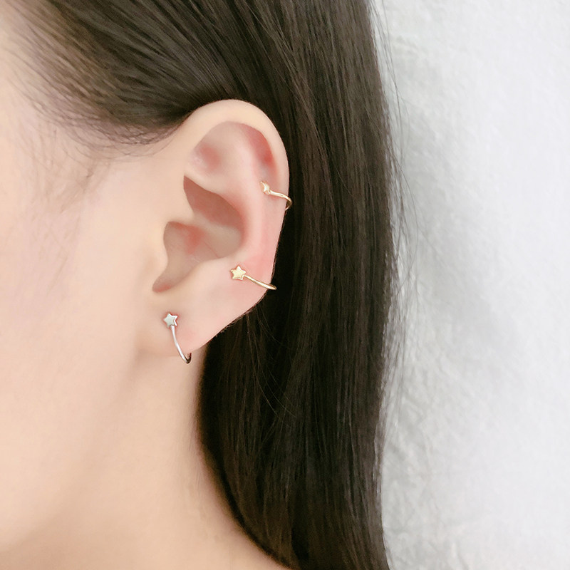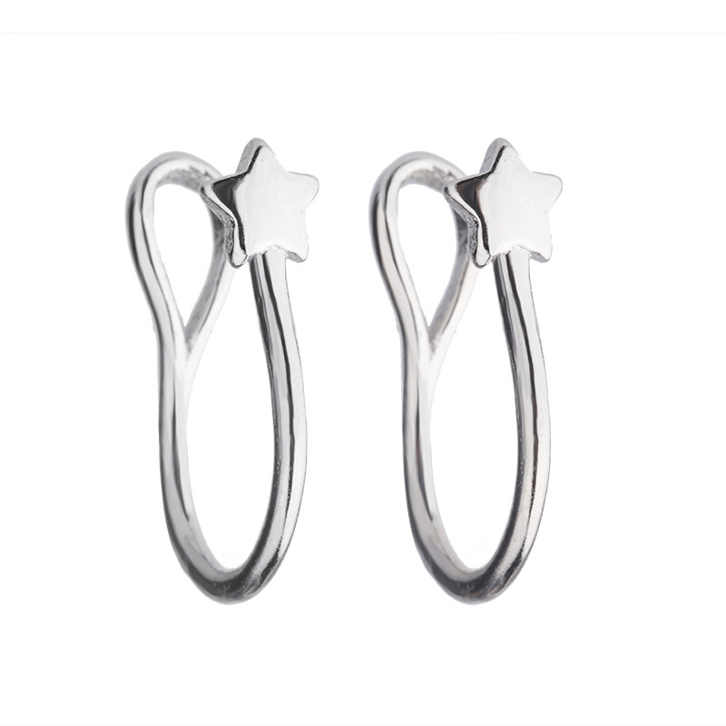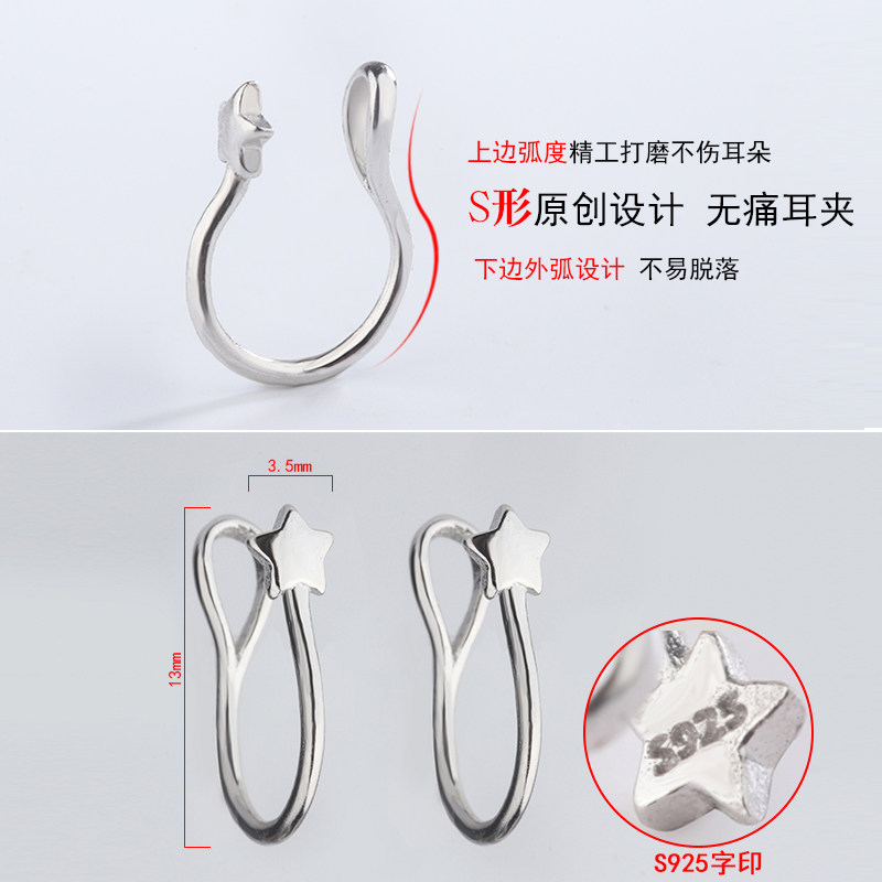 Tingxiang S925 silver five-pointed star ear clip simple net red earrings personality no ear hole ear bone clip earrings ear hook earrings for men and women