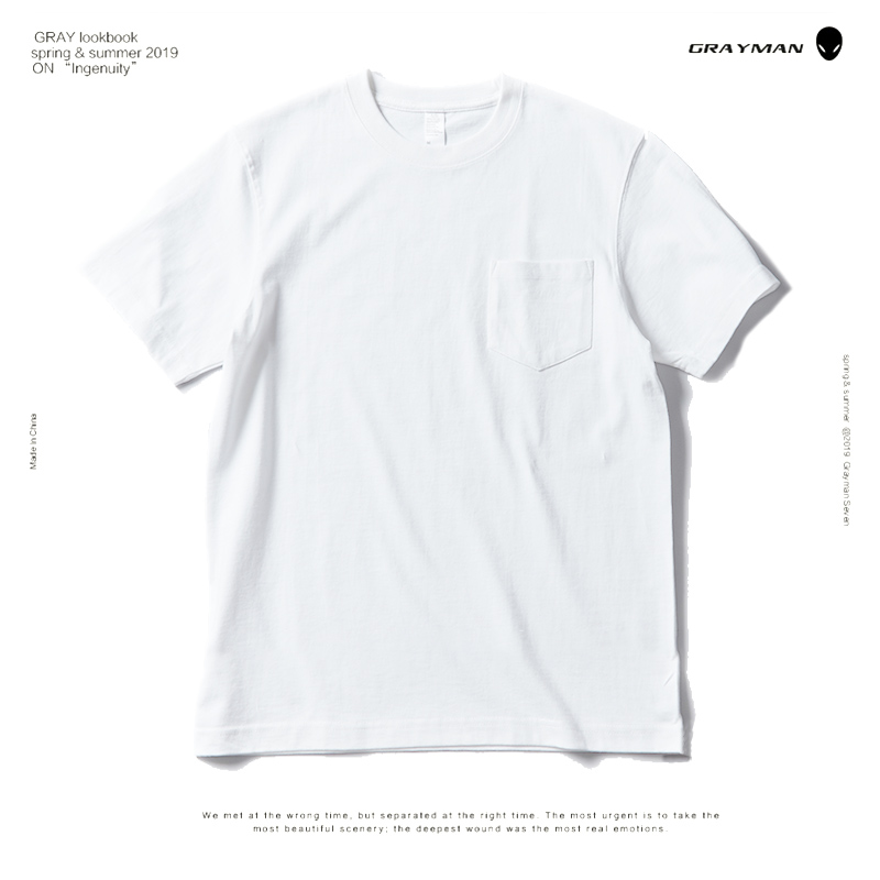 DIY custom personality heavy lbs thick solid cotton short sleeves pocket T-shirt base pure white men and women with undershirt trend