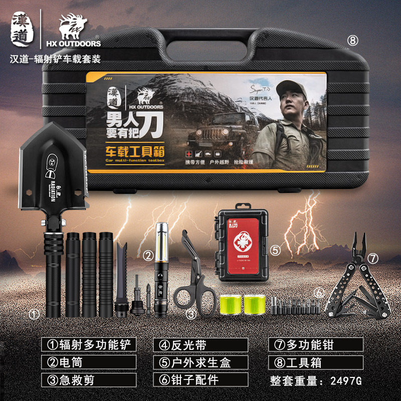 Handao multi-function vehicle-mounted sapper shovel set outdoor vehicle-mounted shovel camping rescue rescue first aid kit toolbox