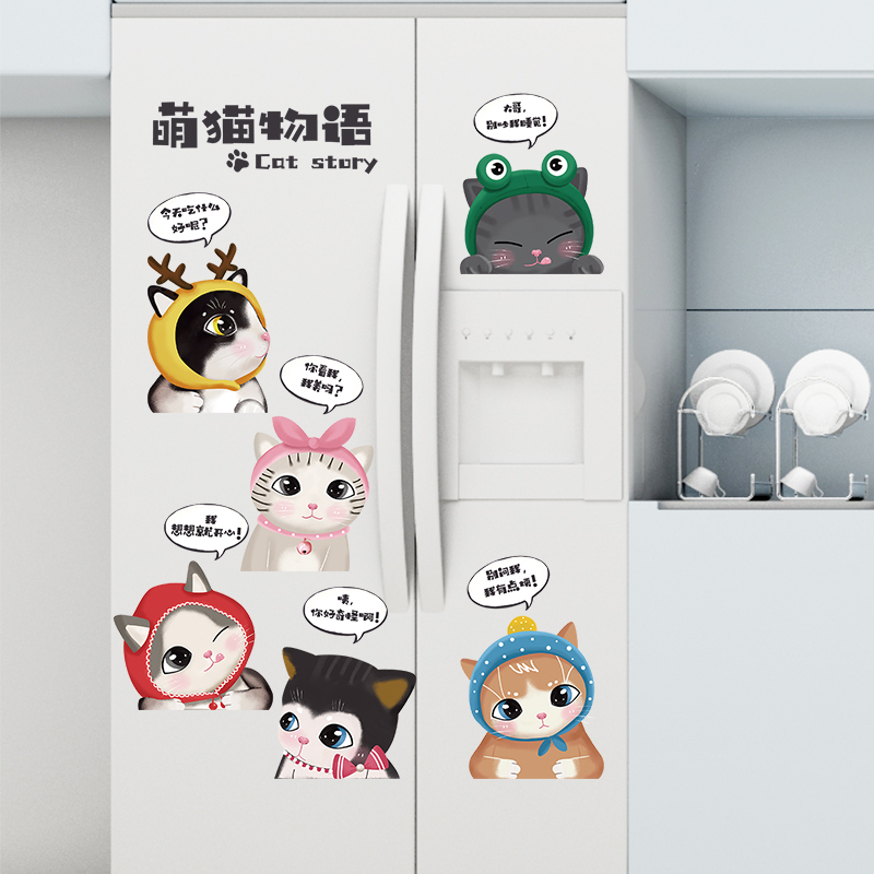 Space Astronaut Cute Sloppy Sloth Bear Cat Dog Big Fight Naughty Stack Cat Round Cartoon Picture Frame Girl Cute Ghost Little Angel Door Sticker-Cat Little Black Cat Kokie For The Rest Of His Life