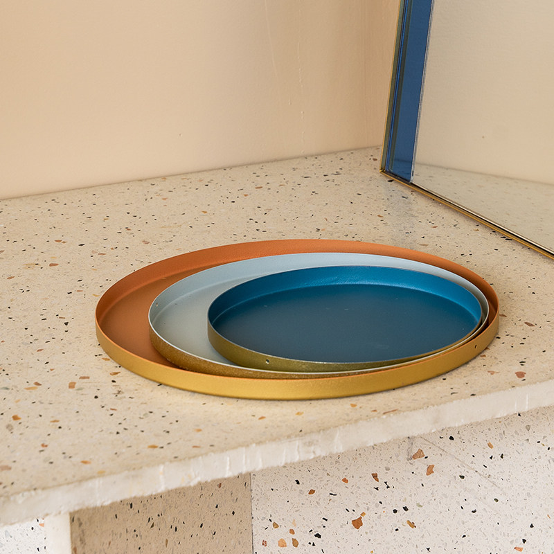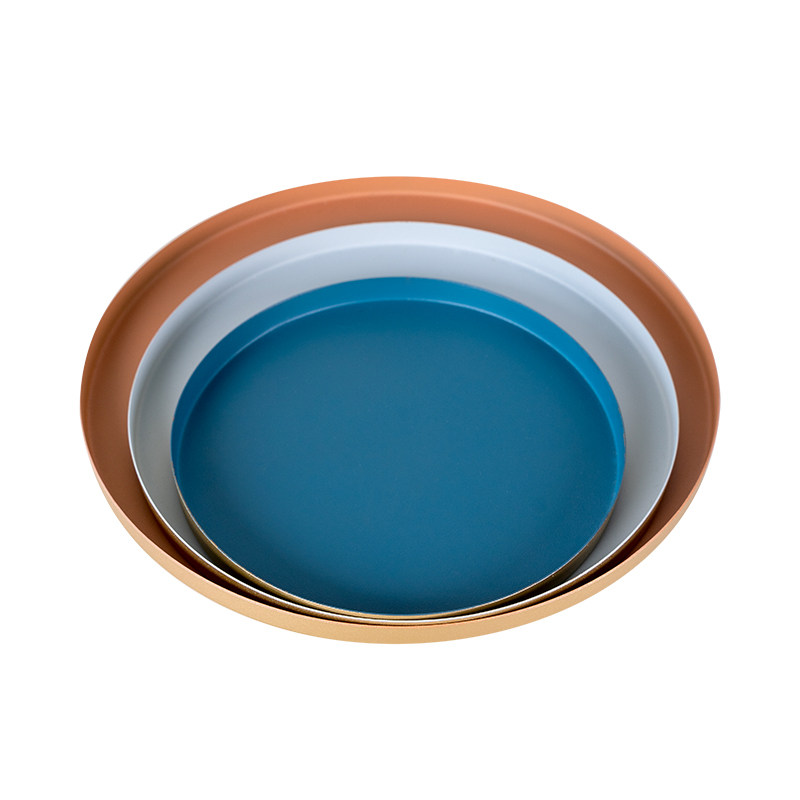 A metal round nursery-blue S 20x1 5B metal round nursery pan-light blue M 25 * 1 5C metal round nursery tray-Orange yellow L 30 * 1 5 group A= shallow