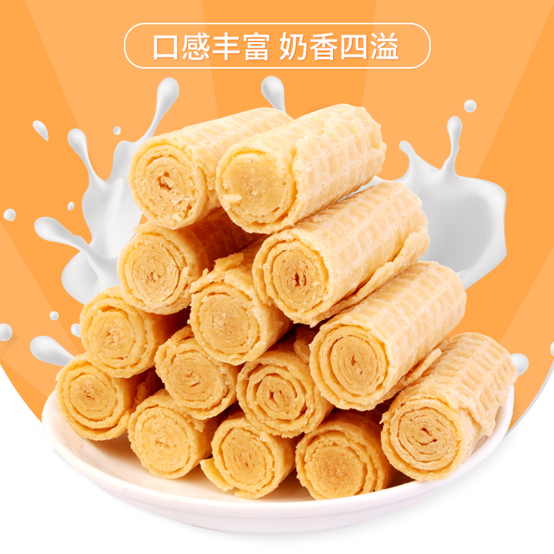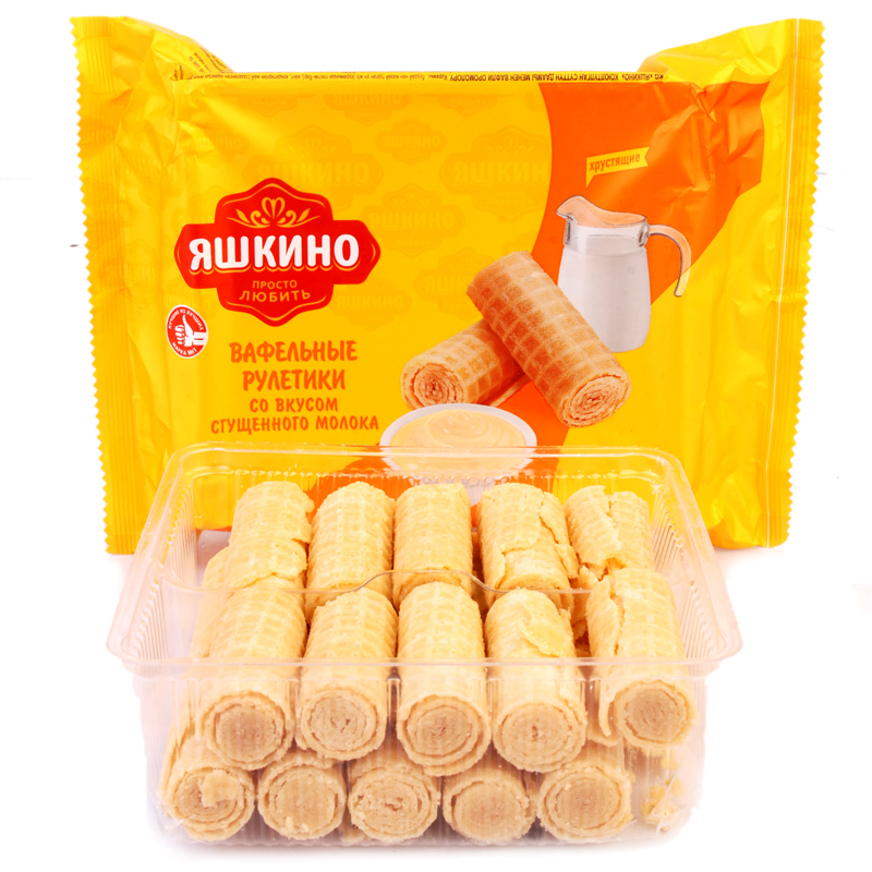 Russian crispy yellow egg rolls sweet and crispy condensed milk-flavored egg rolls casual snack egg rolls 3 packs*160g