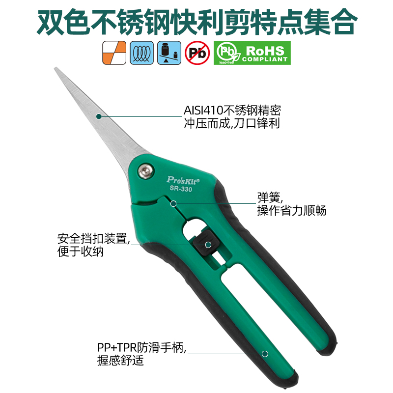 Taiwan Baogong Electronics Electrician Shears Non-slip Trunking Scissors Fruit Branch Scissors Horticultural Stainless Steel Shearing Wire SR-330