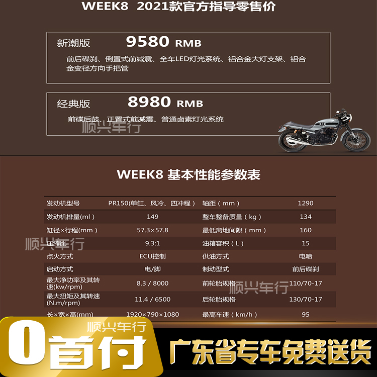 Zongshen Motorcycle New China Four Electric Spray Antique WEEK 8 Coffee Rider Wind Car can be listed