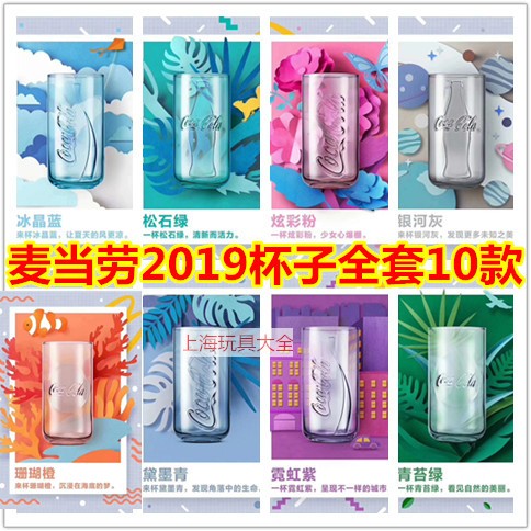 2019 McDonald's cup can-shaped glass water cup Coca-Cola bow and arrow color cup full set of 10 spot