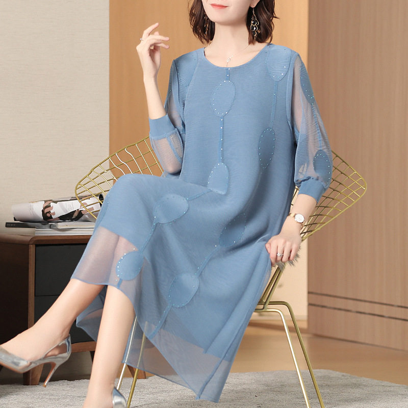 Issey Miyake Pleated dress female high-end large size fashion beaded embroidery 2020 summer loose mom skirt