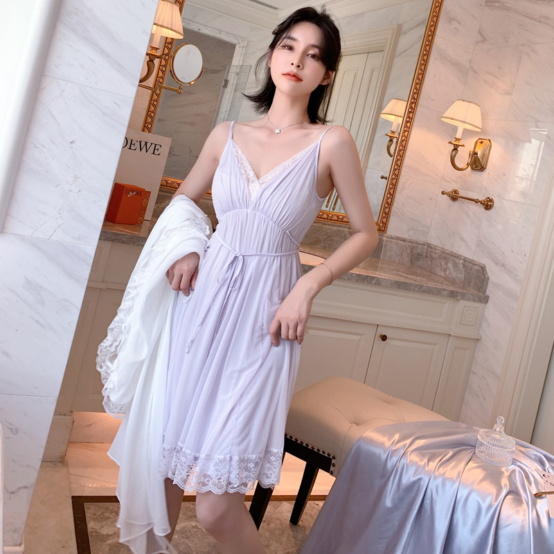 With Chest Cushion Sleepwear Woman Summer Princess Lace Harness Pyjamas Sleeping Dress Sexy Thin palace Wind Ice Silk Home Clothing Thin