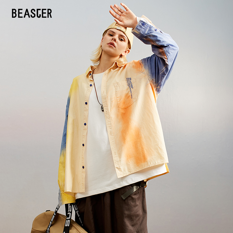 BEASTER little devil grimace couple wear tide brand tie-dye gradient long-sleeved shirt Loose trend shirt ins tide