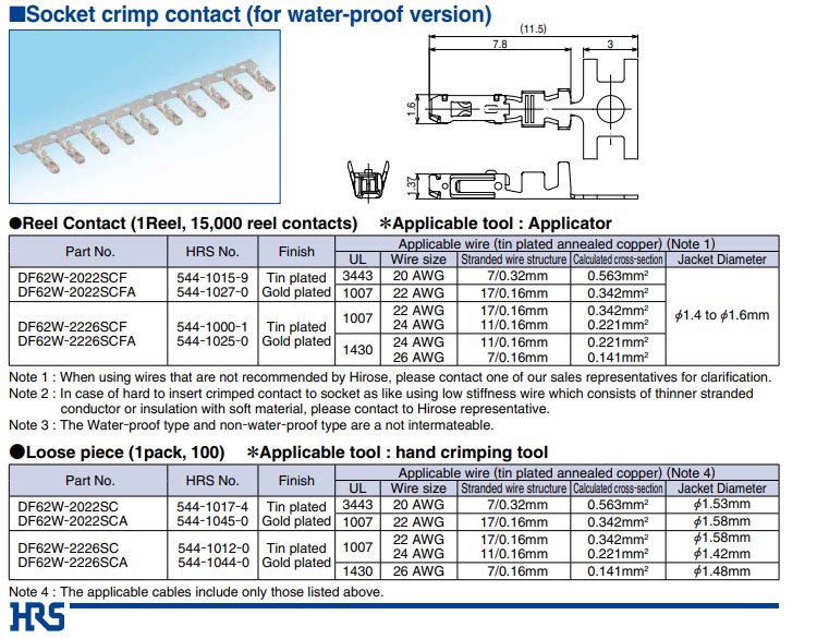 HRS Guangse DF62W-2226SCF original imported connector harness mother terminal New to spot
