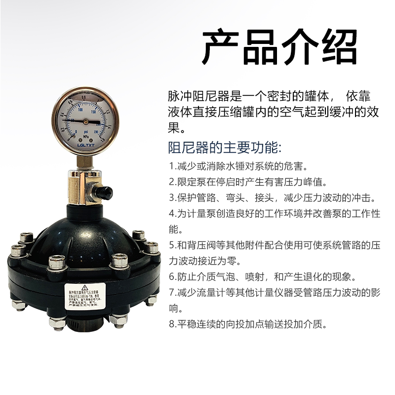 Diaphragm type environmental pulse damper anti-shake UPVC pulsation metering pump with accessory plastic diaphragm buffer tank