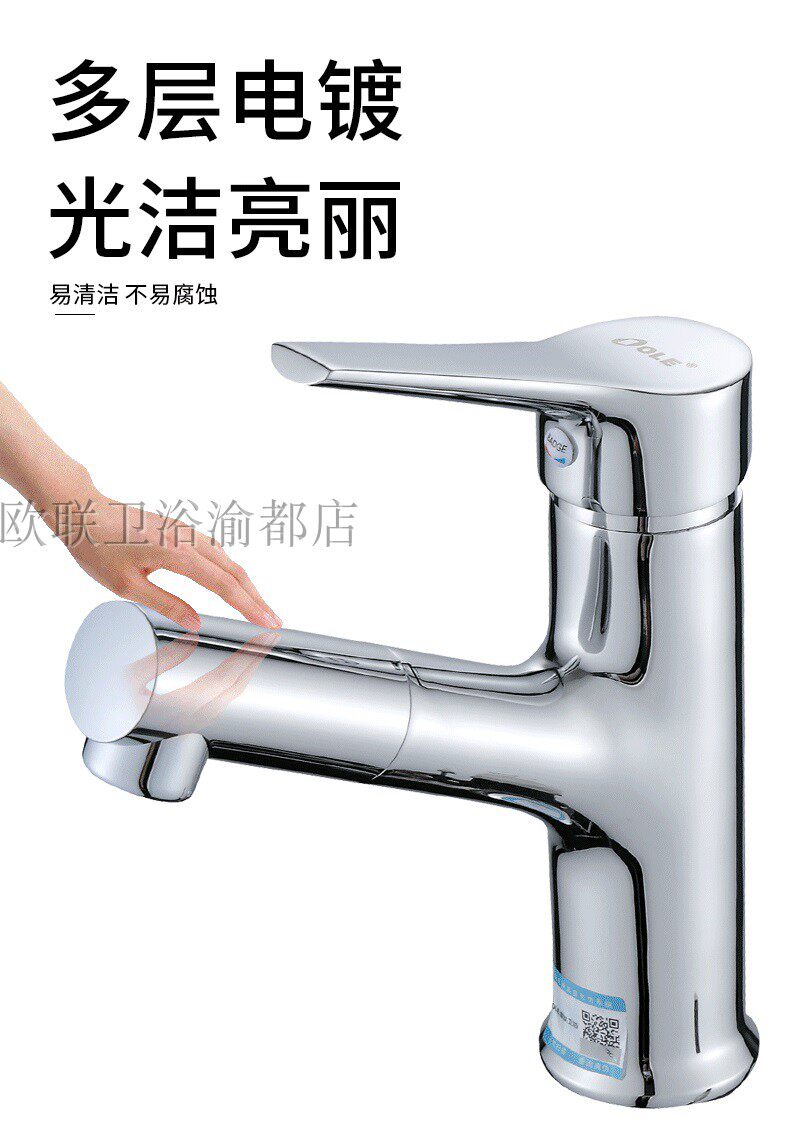 Eurolian Bathroom basin pull-out cold and hot water out valve core single to draw single-hole brass washbasin faucet pull-out