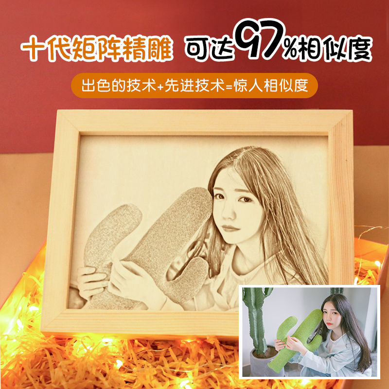 Custom photo woodcut to send girls girlfriend Valentine's Day birthday gift male photo frame couple senior micro-carving