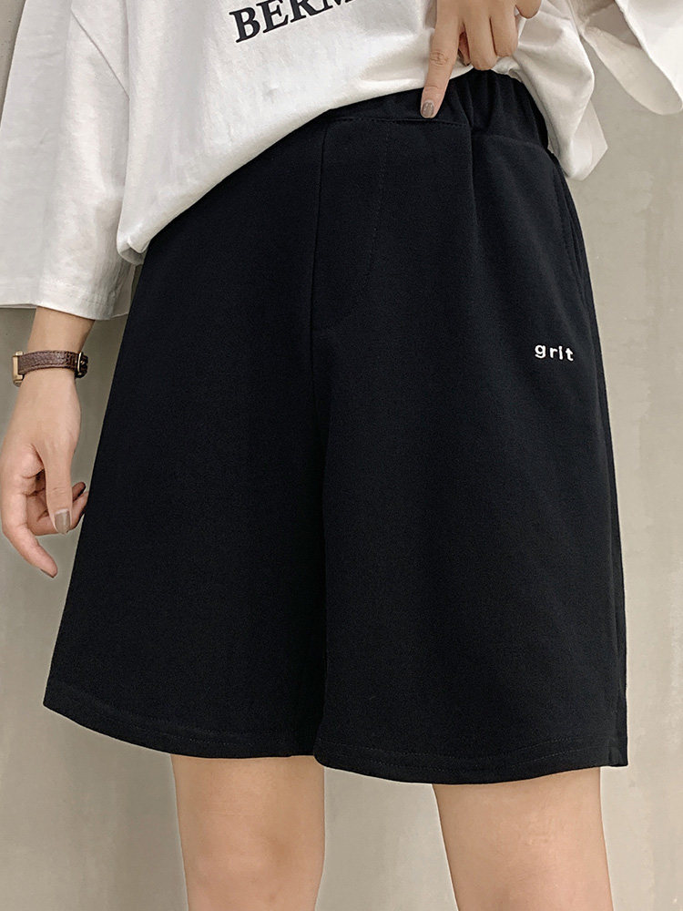 Sports shorts women's summer 2019 new style outer wear Korean version of the trendy loose casual middle pants high waist straight Hong Kong style five-point pants