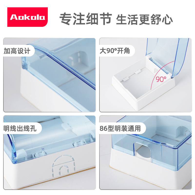 Open-mounted waterproof box 86 type socket waterproof cover toilet bathroom plus high-light line switch free hole anti-splash water box