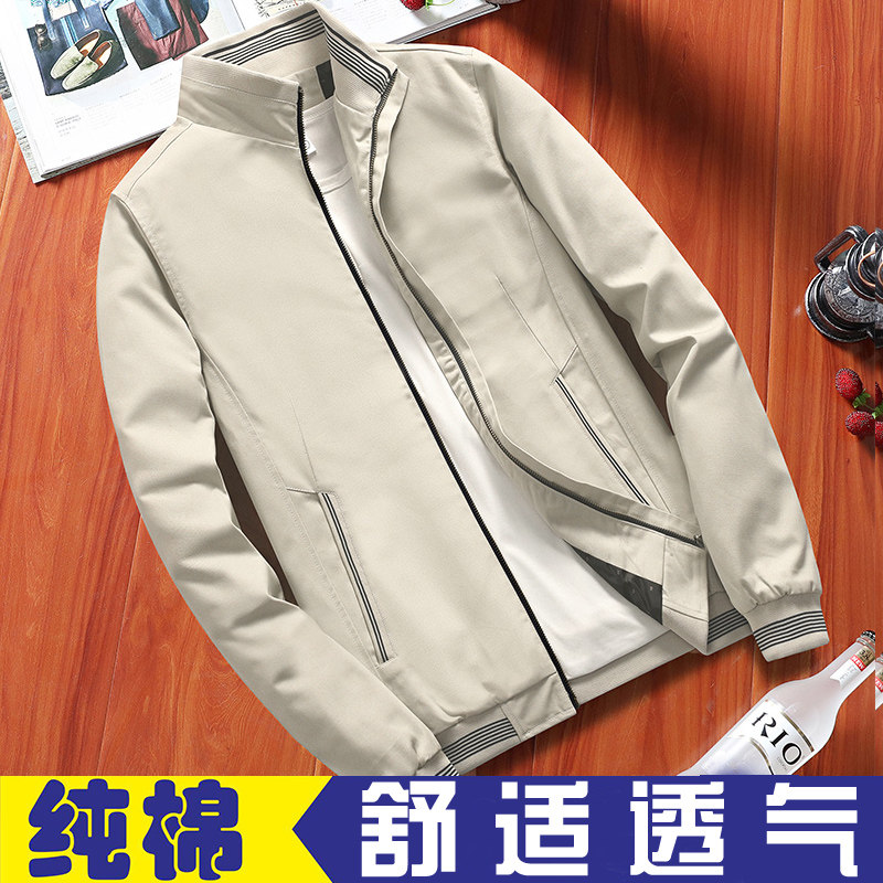Middle Aged Men Jacket Pure Cotton Loose Spring Autumn Season Middle Aged Daddy Loaded Business Casual Clips Jersey Slim Fit Jacket