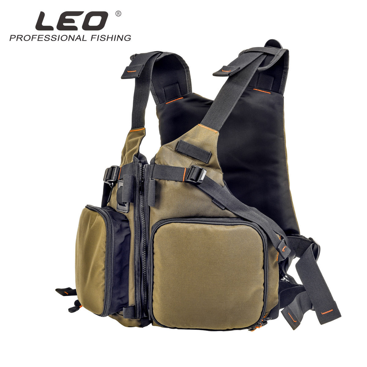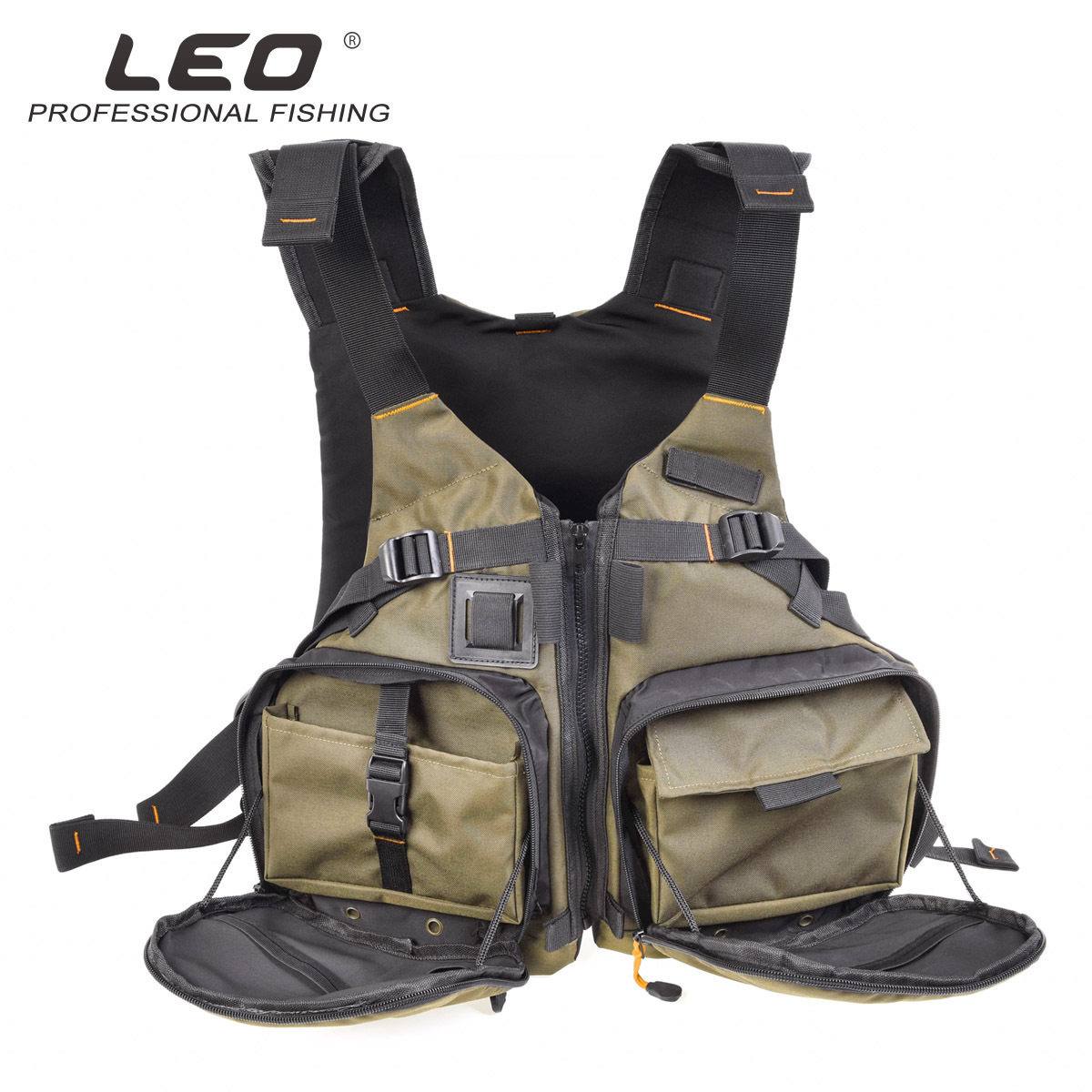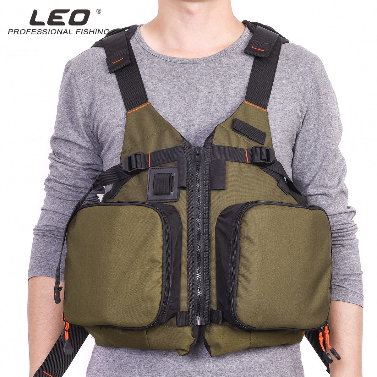 New product 8927988 LEO Leou D86 buoyancy fishing vest (square pocket) olive green fly fishing boat fishing lifesaving