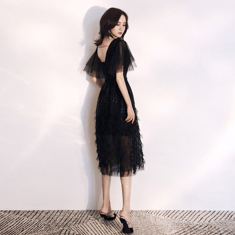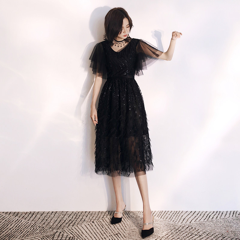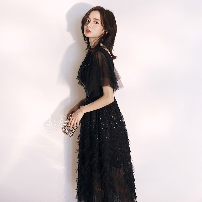 Black evening dress 2021 new noble socialite in the long version of the thin host banquet dress skirt temperament small man