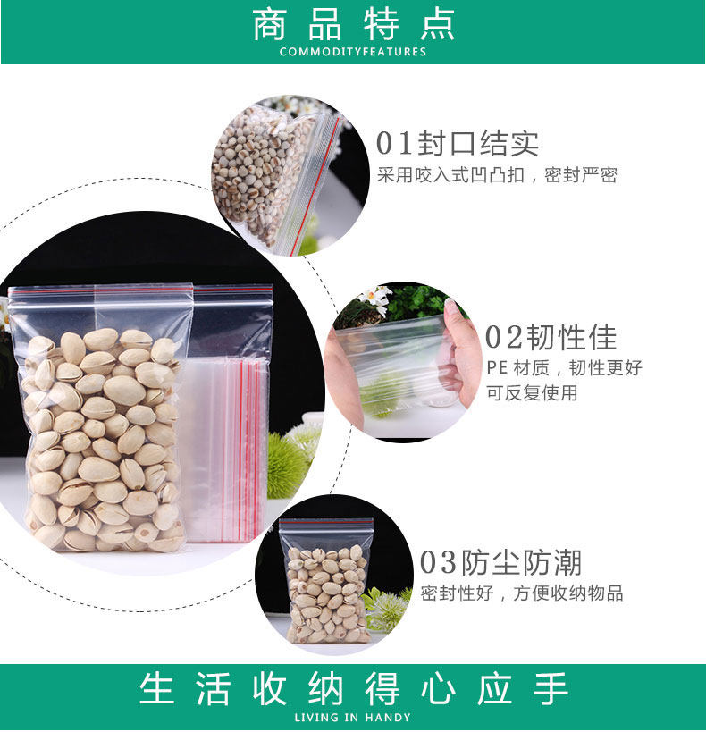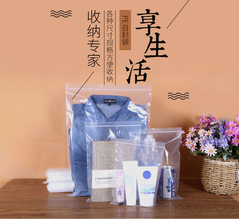 Thickened transparent self-proclaimed bag sealing mouth plastic bag small number refreshing containing food bag large number packing bag