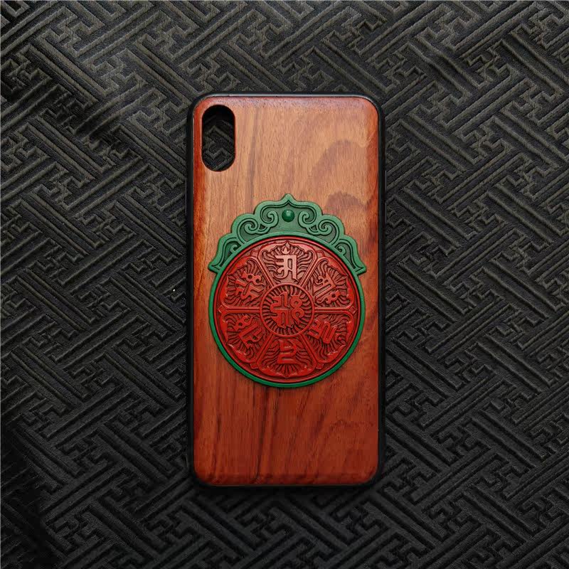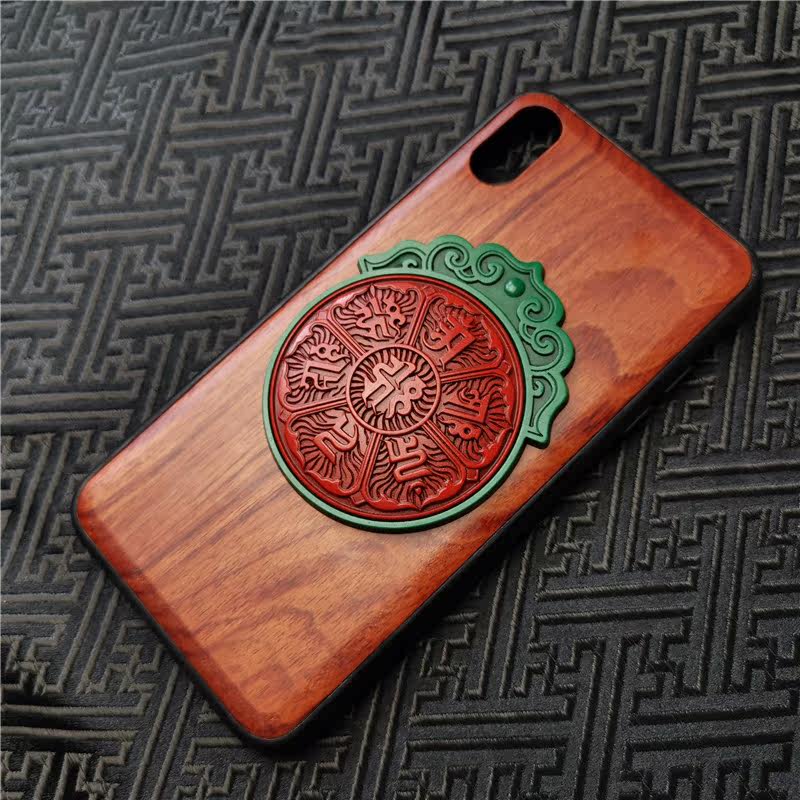 Big lacquer carving lacquer two-color six-word proverb Lacquerware Solid wood mobile phone case iPhone7 8Plus 11 12ProMAX