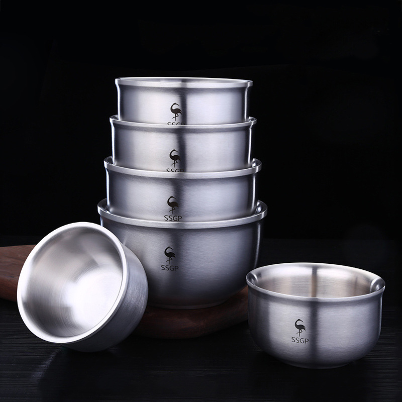 304 Stainless steel bowl Children's bowl Single drop-proof double insulated adult household bowl Rice bowl Instant noodles bowl