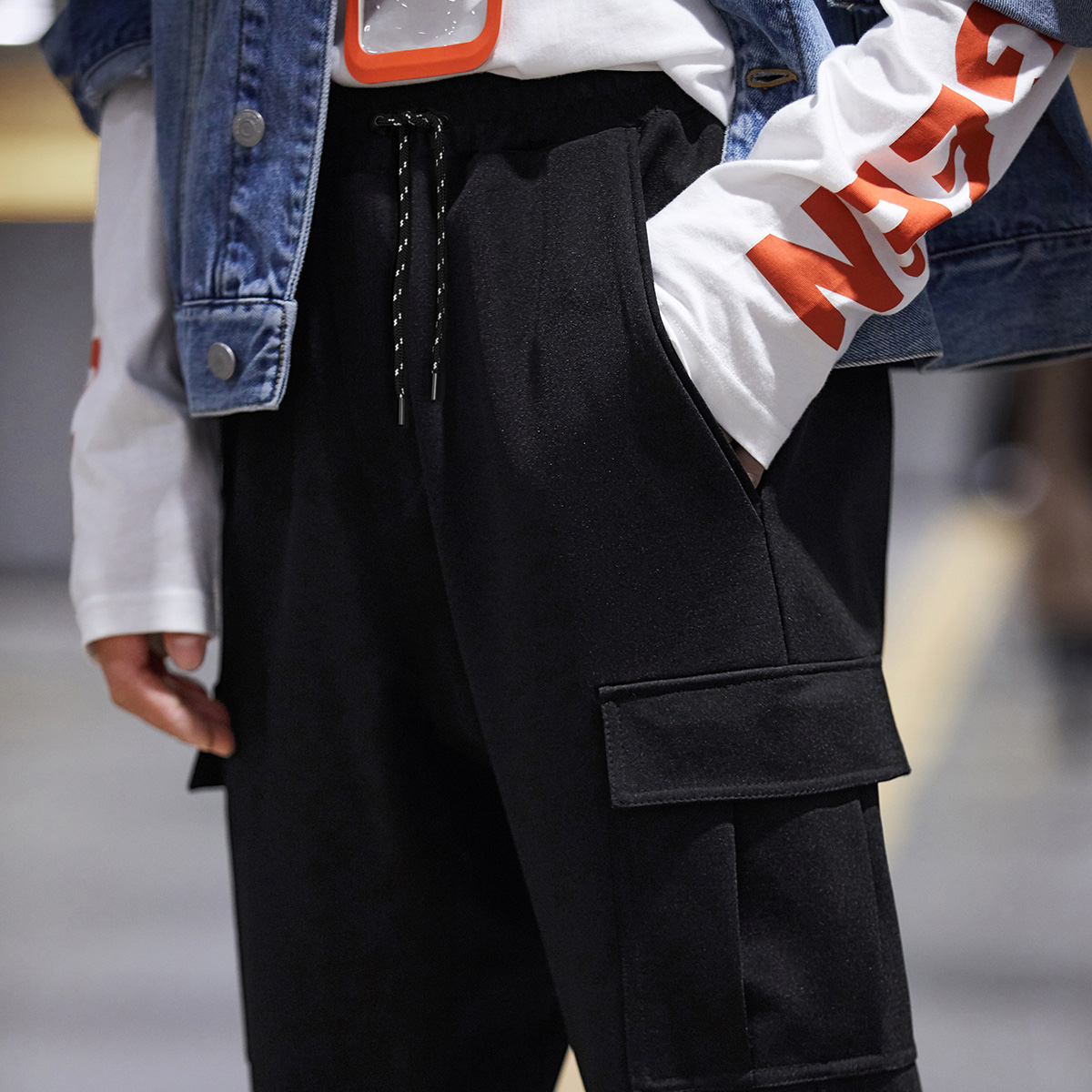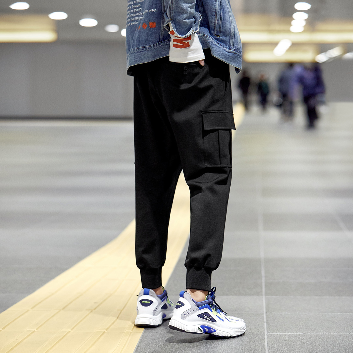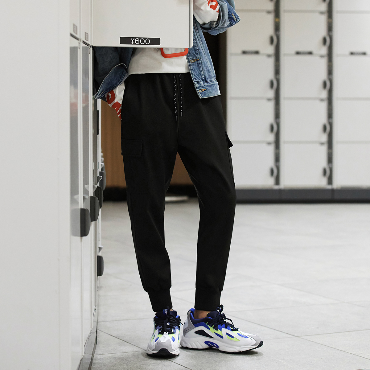 Taiping bird men's clothing Olai new overalls tide brand black micro-elastic leg pants Harun ins pants male m~