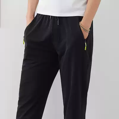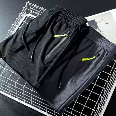 Ice silk casual pants men's summer mesh breathable quick-drying sports elastic loose pants ultra-thin air-conditioning pants trousers