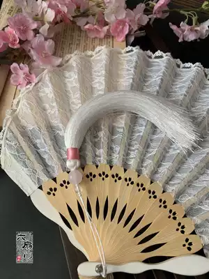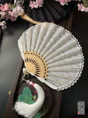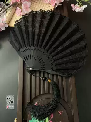 Japanese folding fan and fan Court bamboo handle fan Shell fan Large knife fan Gift fan Double black lace fan dance