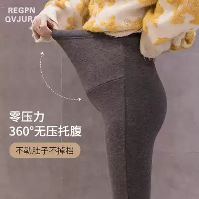 Pregnant women's inner pants plus velvet thick winter warm pants cotton women's belly pants Autumn and winter inner and outer trousers large size