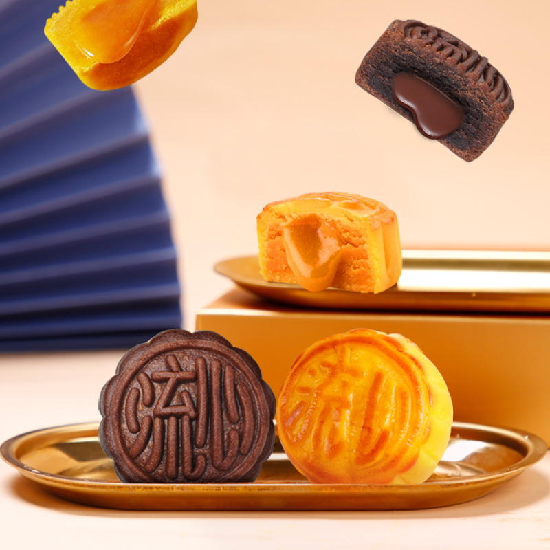 Mid-autumn moon cakes customized fresh fruit custard flow heart Cantonese-style egg golden legs five-kernel egg moon-burned fruit in bulk multi-flavor
