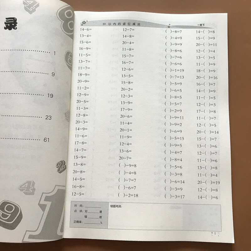 New version Primary students 1st grade Next semester Entrance Math Card 1 Grade Lower Register of People Education Edition Sync 100 Inner plus subtraction Math Exercise Book 100 plus subtraction Lianlian Math Topics Meta-RMB Conversion