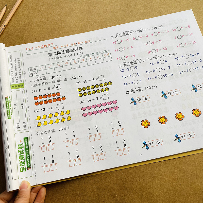 New version Primary grade 1st grade lower register math paper students teaching version synchromatical thinking training 1 grade lower semester math test volume unit period end of exam comprehensive improvement test meta-angle sub-application topic 100 less plus minus