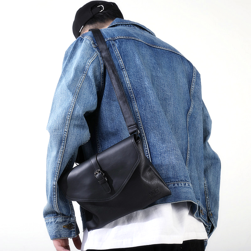 BOTB Japanese casual PU leather messenger bag men's handsome shoulder bag trendy envelope clutch bag with lid backpack