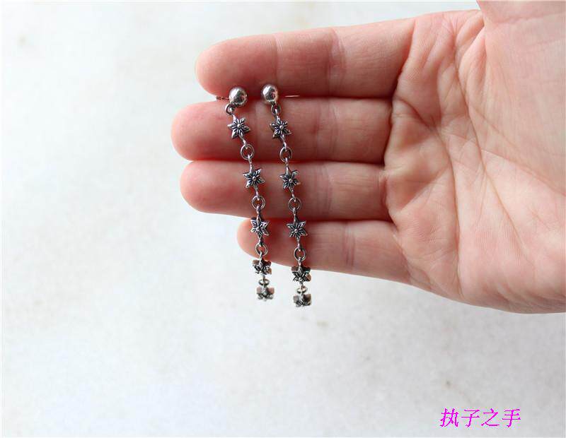 Crow Tide brand classic GD925 sterling silver cross Wei Xue ear chain hexagram ear pin earrings earrings earrings