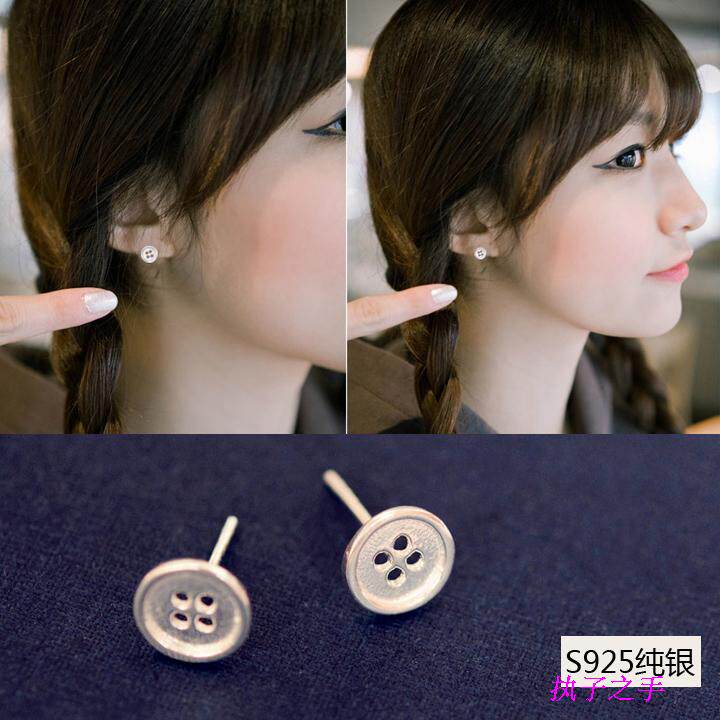 Dongdaemun simple fashion s925 sterling silver earrings Korean version of female personality button earrings sweet button earrings earrings