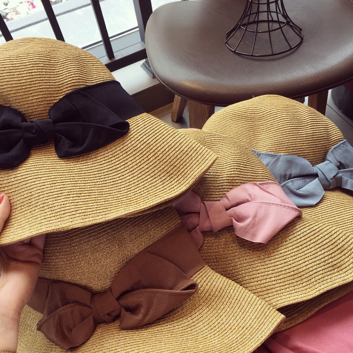Japanese sunscreen straw hat bow Japanese female beach foldable mother mother with summer sunshade fisherman hat