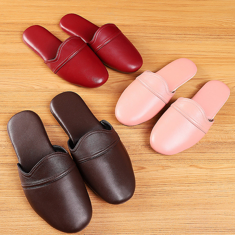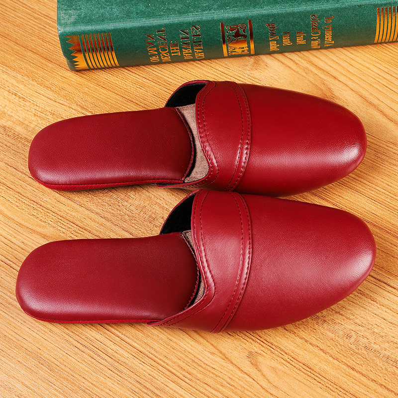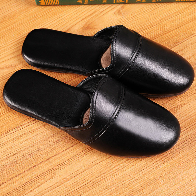 Haining Chunqiu handmade sheepskin home leather slippers female couple indoor floor deodorant mute slippers male