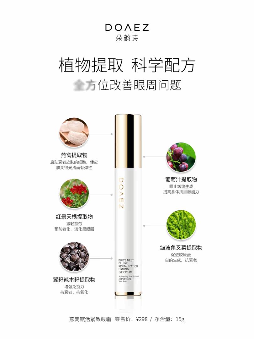 Duoyunshi DOAEZ Eye Cream Bird's Nest Revitalizing Firming Golden Hoop Stick Lifting and Removing Fine Lines Pregnant Women Blue Copper Peptide 15g