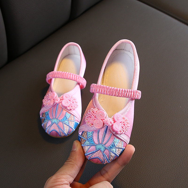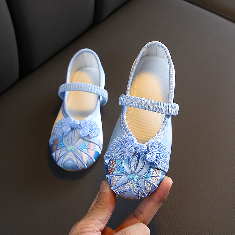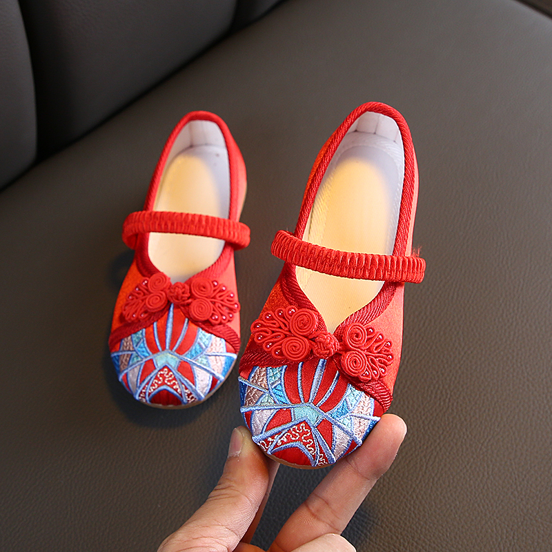 Hanfu Shoes Children Cloth Shoes National Wind Spring Autumn Girl Embroidered Shoes China China Wind Silk Satin Shoes Old Beijing Handmade Shoes